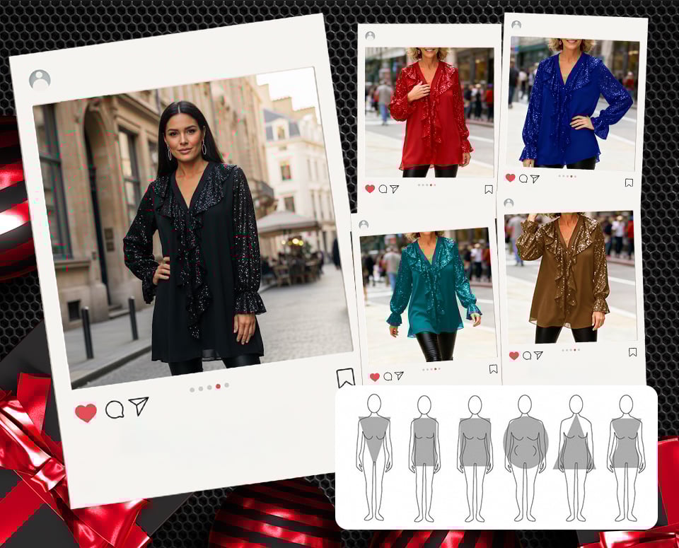 Nur für kurze Zeit! Sichere dir dieses essentielle Oberteil mit funkelnden Pailletten-Ärmeln und einem romantischen Rüschen-V-Ausschnitt. Verleihe dir sofortigen Festtagsglanz – bevor das Angebot endet!GRÖSSENTABELLE