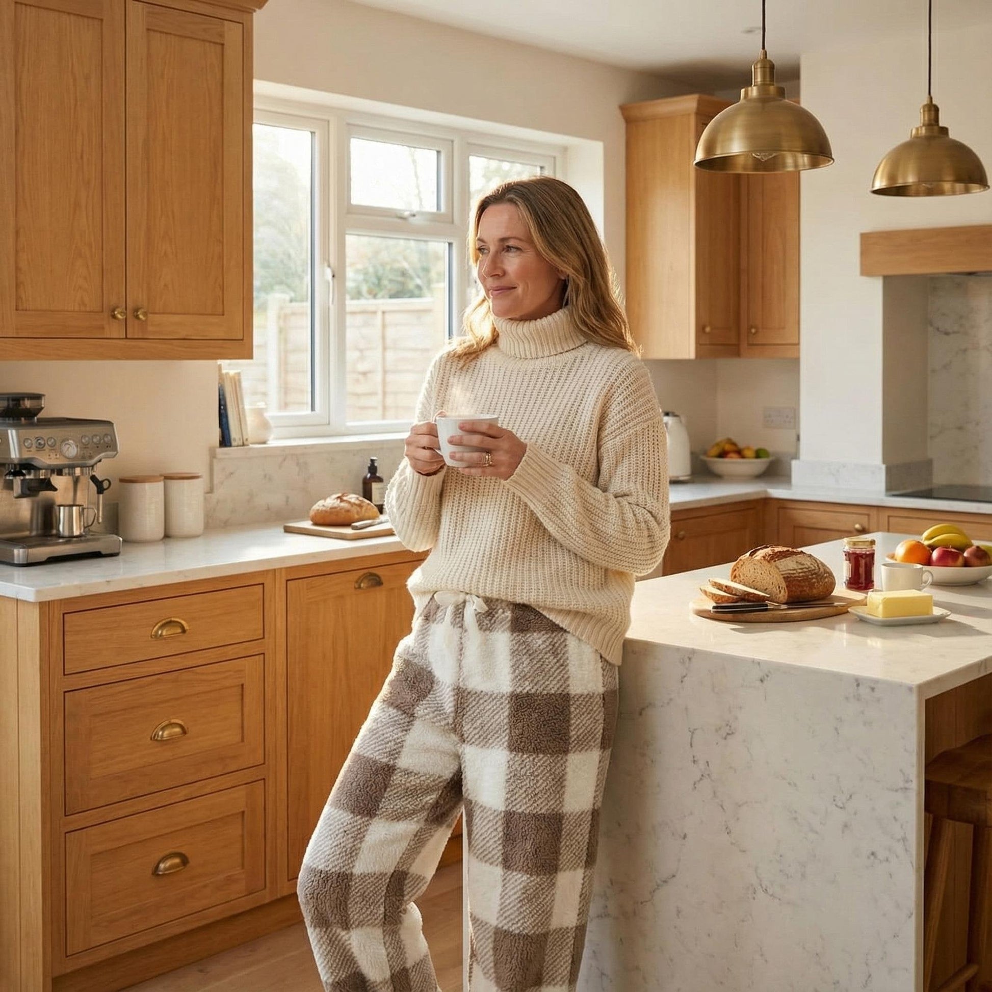 • Diese Hose wurde speziell für den britischen Winter entworfen: Das luxuriöse Fleece sorgt für langanhaltende Weichheit und optimale Wärmespeicherung (keine kratzigen, dünnen Stoffe). Das Vintage-Karomuster ist eine Hommage an den klassischen britischen Stil – zeitlos genug, um sie Jahr für Jahr zu tragen, nicht nur eine Saison. Verstärkte Nähte garantieren, dass die Hose unzählige gemütliche Abende und festliche Abenteuer mitmacht. Komfort, auf den Sie sich verlassen können, vereint mit einem Stil, der perfekt in Ihre britische Garderobe passt.