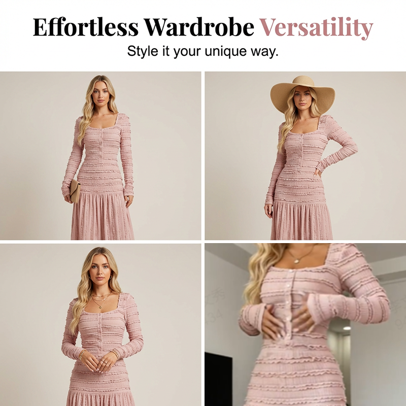 Ob Sie an einer Gartenhochzeit, einem Wochenend-Brunch oder einer Abendgala teilnehmen – dieses vielseitige Maxikleid sorgt dafür, dass Sie mühelos elegant und stilvoll aussehen.