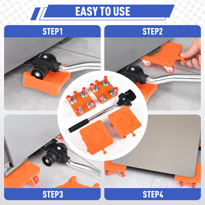 360° FLEXIBLE LENKUNG – Bewegen Sie sich mit vollständiger Kontrolle: Ausgestattet mit Universalrädern ermöglicht dieser Möbelheber für schwere Möbel eine 360-Grad-Drehung für mühelose Richtungswechsel. Ob Sie nun enge Kurven nehmen oder über ebene Flächen gleiten, Sie erleben eine sanfte, leise Bewegung, die die Frustration beim Umstellen schwerer Gegenstände beseitigt. Ideal für kleine oder große Möbelstücke, verbessert er die Kontrolle und reduziert gleichzeitig die körperliche Belastung.
