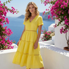 Aufwendig gearbeitete Spitzenbesätze entlang des V-Ausschnitts und an den gestuften Partien verleihen dem Kleid einen Hauch von Bohème-Charme und Raffinesse und werten Ihren Alltagslook mit zarten, auffälligen Mustern auf.