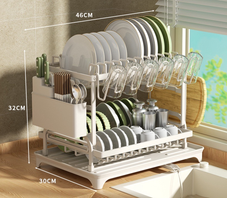 Dieser 2-stufige Geschirr-Organizer bietet die perfekte Lösung, um Teller, Tassen und andere Küchenutensilien sauber und griffbereit aufzubewahren. Dank der praktischen Ablaufschale trocknet dein Geschirr schnell und hygienisch. Ideal für Familienküchen und alle, die Ordnung lieben.