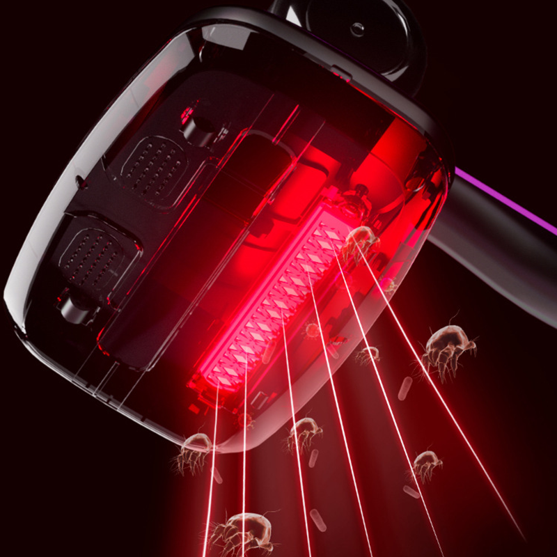 Hochfrequente Doppelreinigung & UV-Leckageschutz  – Maximale Reinigungsleistung ohne Kompromisse bei der Sicherheit. Doppelt rotierende Reinigungspads lösen tiefsitzende Partikel aus den Fasern und erhöhen so die UV-Bestrahlung der Hausstaubmilben für eine gründliche Sterilisation. Das Gerät verfügt über einen intelligenten UV-Leckageschutz, der versehentlichen Kontakt mit Haut oder Augen verhindert.