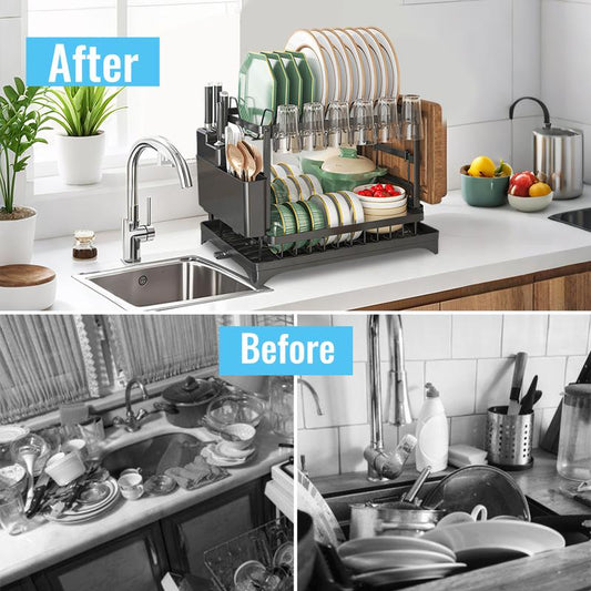 📢📢Letzte Chance: 50% Rabatt !!!⏰ 2-stufiges Geschirr-Abtropfregal – Mit Ablaufschale, Platzsparend & Ideal für Familienküchen