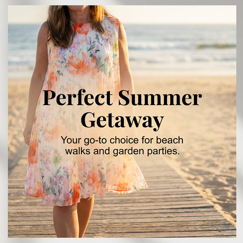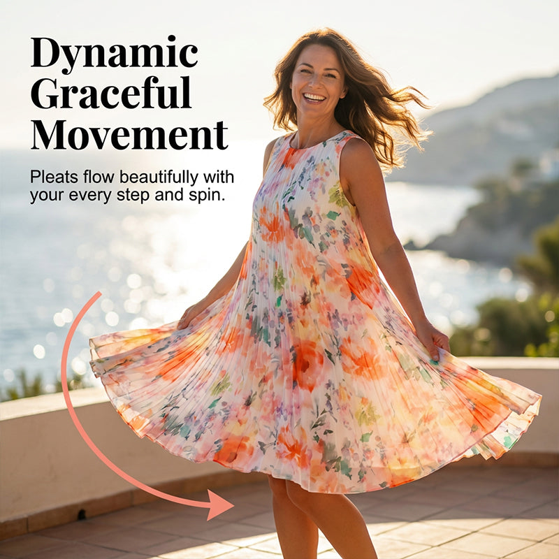 Lieferumfang: 1*Ärmelloses Damenkleid mit Blumenmuster und Falten