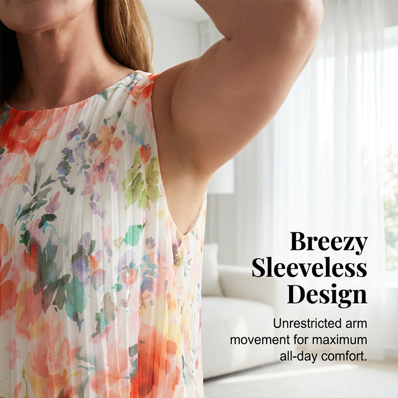 VIELSEITIGES ÄRMELLOSES DESIGN – Perfekt für warmes Wetter: Der ärmellose Schnitt sorgt für ein kühles und angenehmes Tragegefühl. Das Kleidungsstück lässt sich außerdem leicht mit einer Strickjacke oder Jacke kombinieren und ist somit ein vielseitiges Teil für den Übergang zwischen den Jahreszeiten und verschiedenen Anlässen.