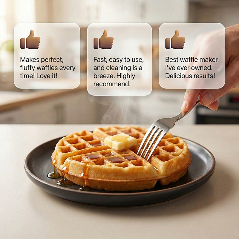 DOPPELSEITIGES HEIZEN – Sorgt dafür, dass Ihre Waffeln gleichzeitig von oben und unten gleichmäßig garen. Dadurch entfällt das Wenden und Sie erhalten jedes Mal eine gleichmäßig knusprige Außenseite und ein fluffig-zartes Inneres.