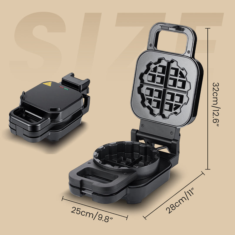 KOMPAKT & AUFSTELLBAR – Das schlanke, platzsparende Design ermöglicht die vertikale Aufbewahrung. So passt das Waffeleisen perfekt in jede Küche, egal ob groß oder klein, und lässt sich einfach im Schrank oder auf der Arbeitsfläche verstauen.