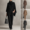 Damen-Set: Cape-Oberteil mit Wasserfallkragen & Hose mit weitem Bein