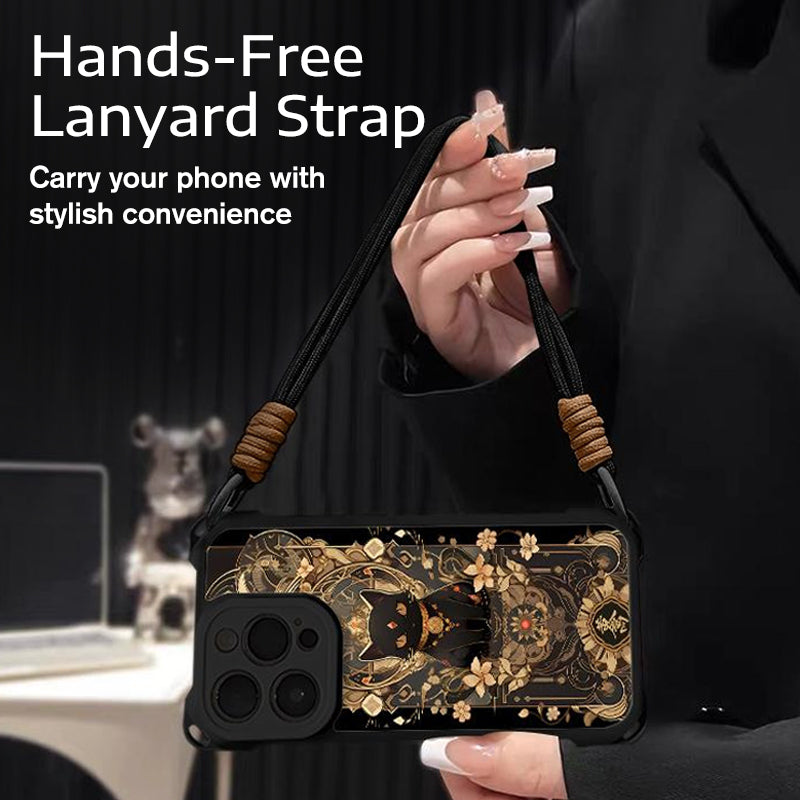 Handyhülle mit schwarzem Katzen- und Goldmuster Hülle für iPhone🎁KOSTENLOSES Umhängeband