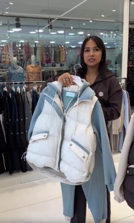This three-piece set has a smart coordinated design, combining different garments to create a stylish, layered look. The hood gives a casual feel while keeping you warm.The loose fit at the top is comfortable and allows for freedom of movement without restricting the body. The moderate length goes well with the matching trousers and creates a cohesive look.