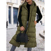 Lange Steppweste für Damen mit Kapuze und Knopfverschluss